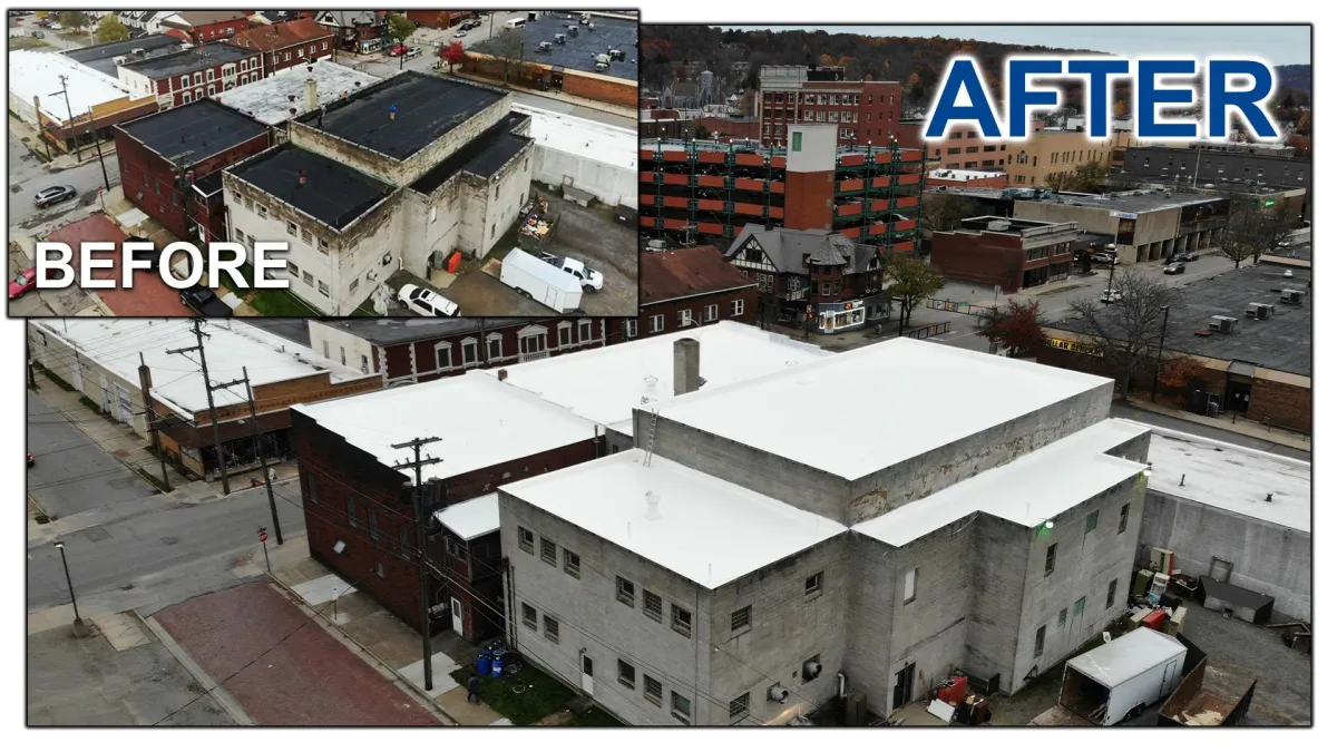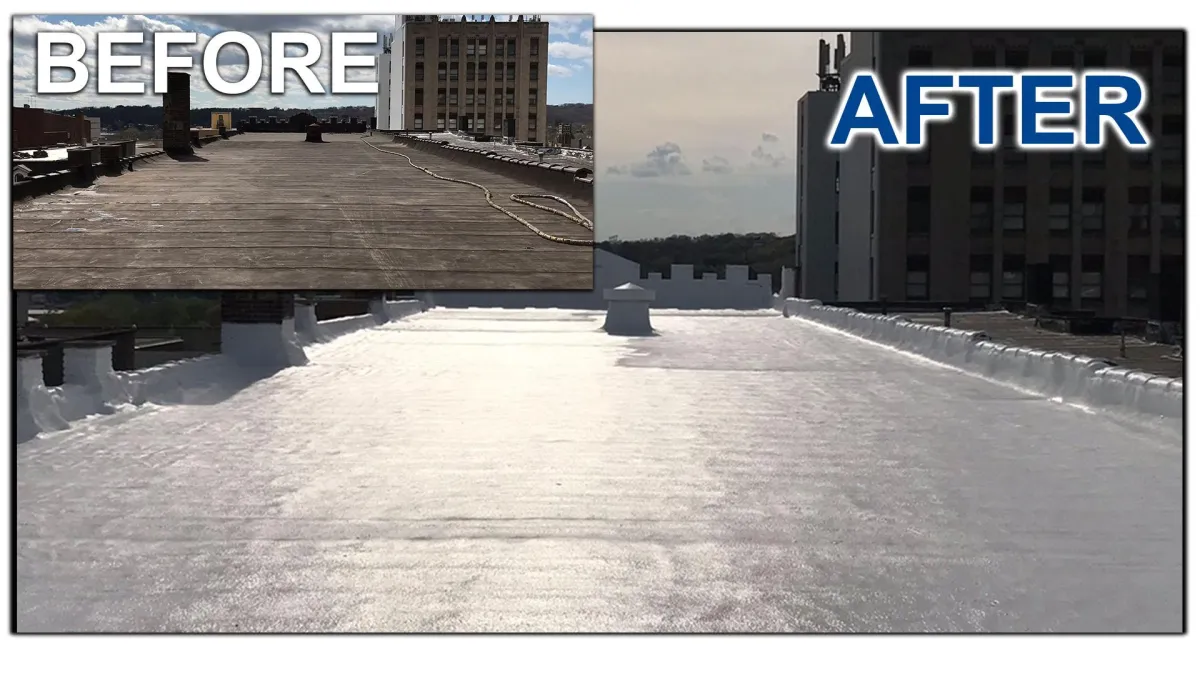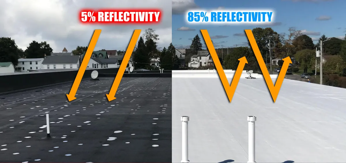 The high reflectivity of the coating dramatically reduces the surface temperatures of the roof. Building owners can sometimes see energy bills decrease up to 40%.