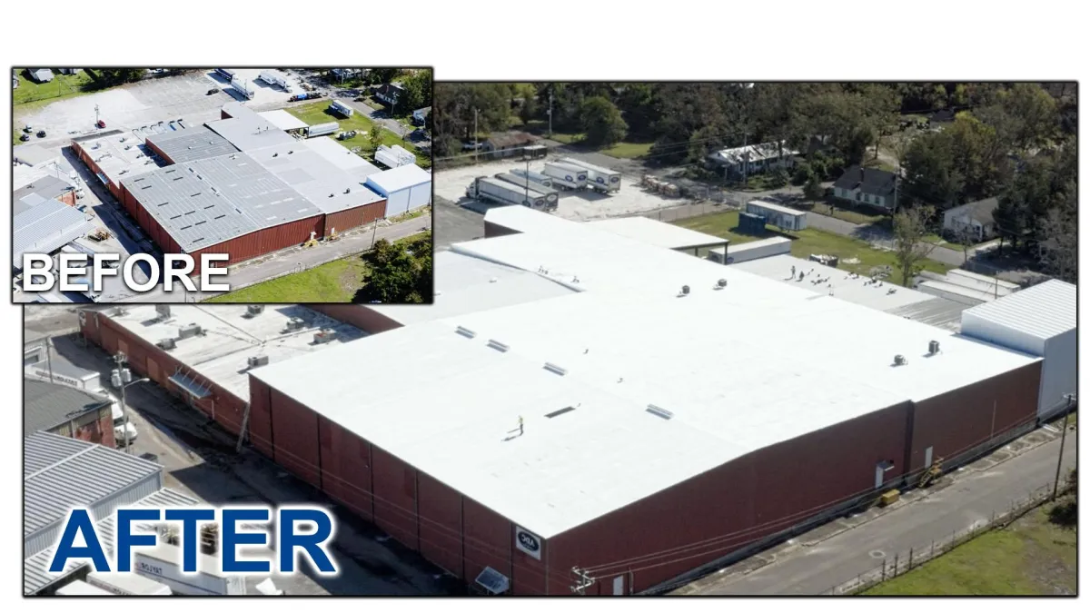 he high reflectivity of the coating dramatically lowers roof surface temperatures — with some building owners reporting energy cost reductions of up to 40%.